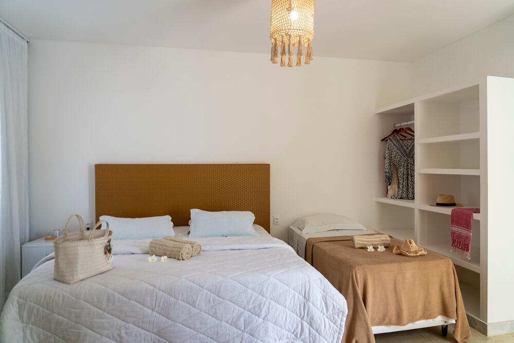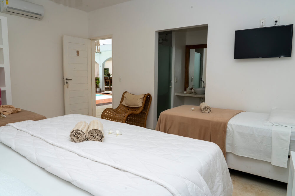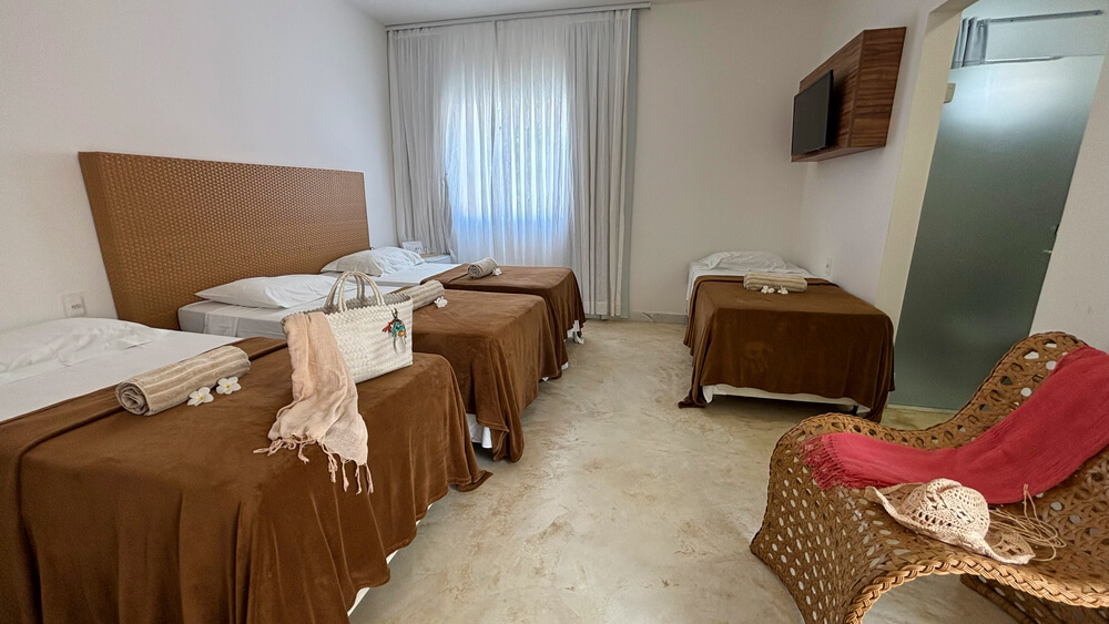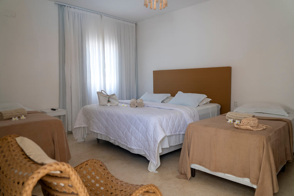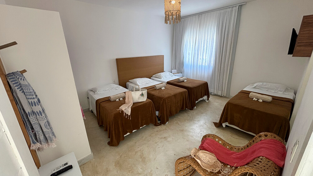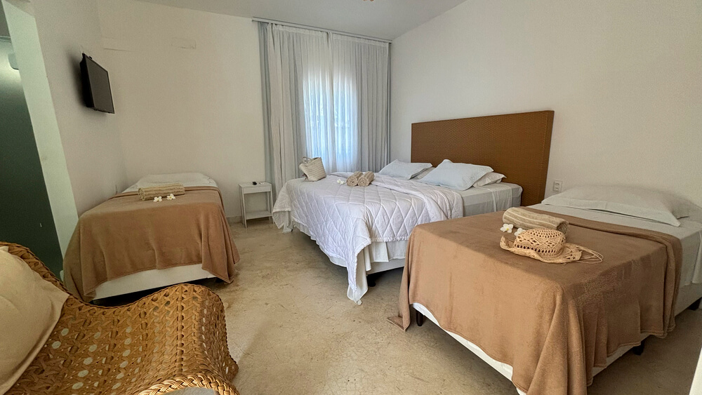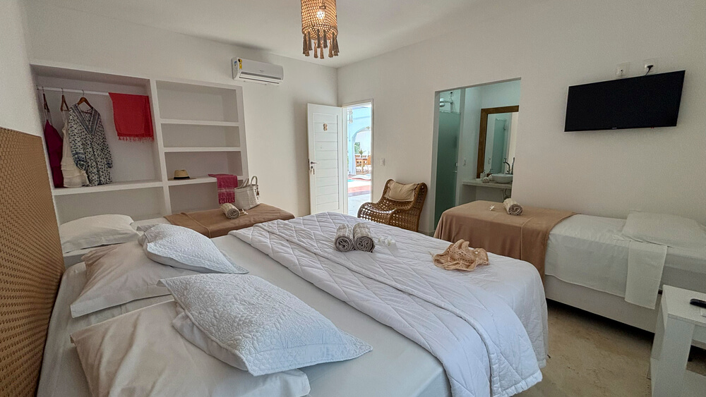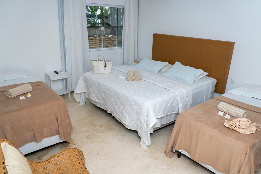 CAMAS: 1 cama casal queen-size + 2 camas individuais ou 4 camas individuais;