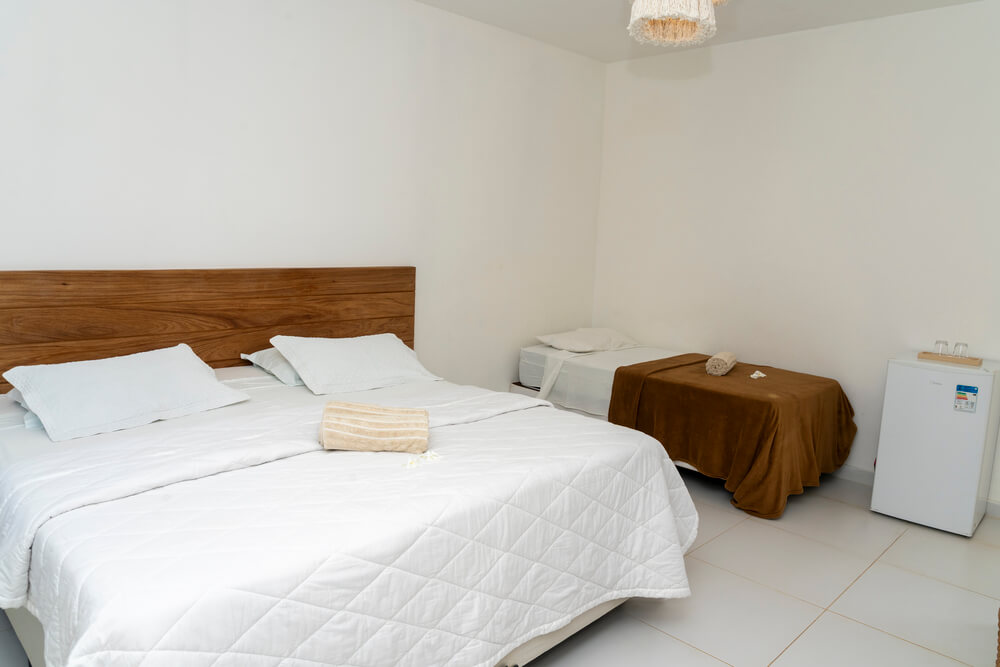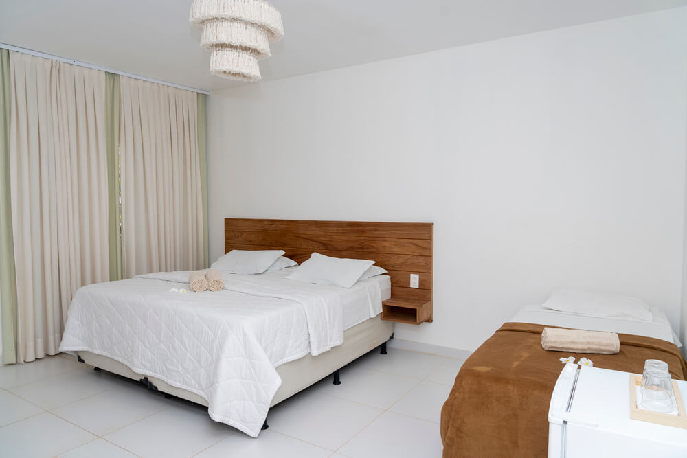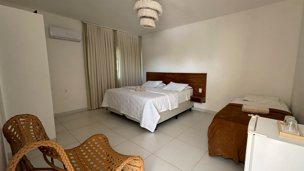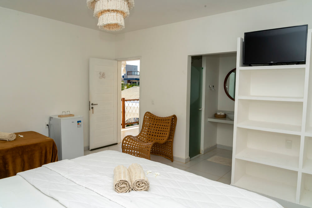 Estes quartos incluem todas as comodidades essenciais para uma hospedagem confortável: